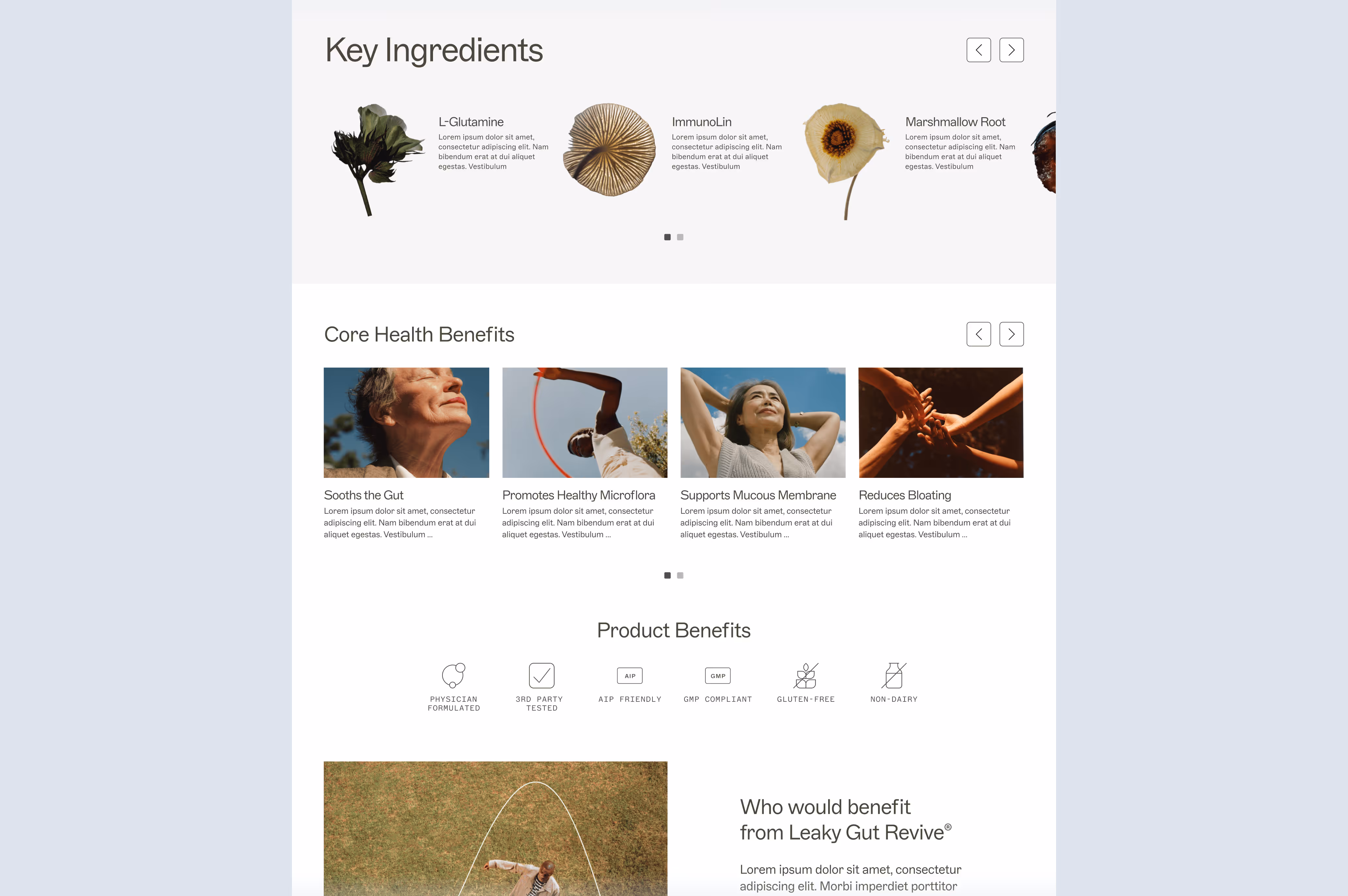We started by building a comprehensive UI Kit to establish a consistent visual language. As we progressed with designing sections of the site, we refined the UI Kit by introducing new components, adjusting existing ones, and iterating based on design needs and client feedback.